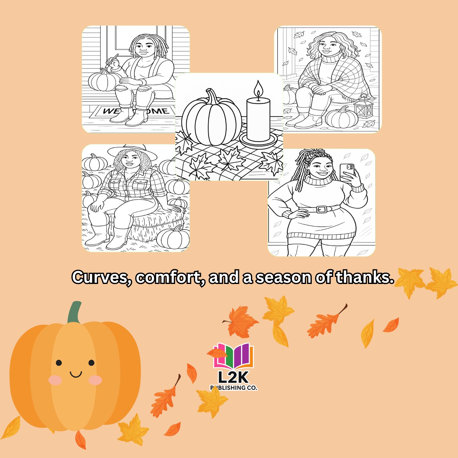 Fall looks good on you. ✨ Cozy up with 30 beautifully illustrated pages featuring confident, curvy Black women embracing the warmth of the season. From pumpkin spice mornings and Friendsgiving dinners to quiet self-care nights, every page captures the glow of gratitude, comfort, and style.
