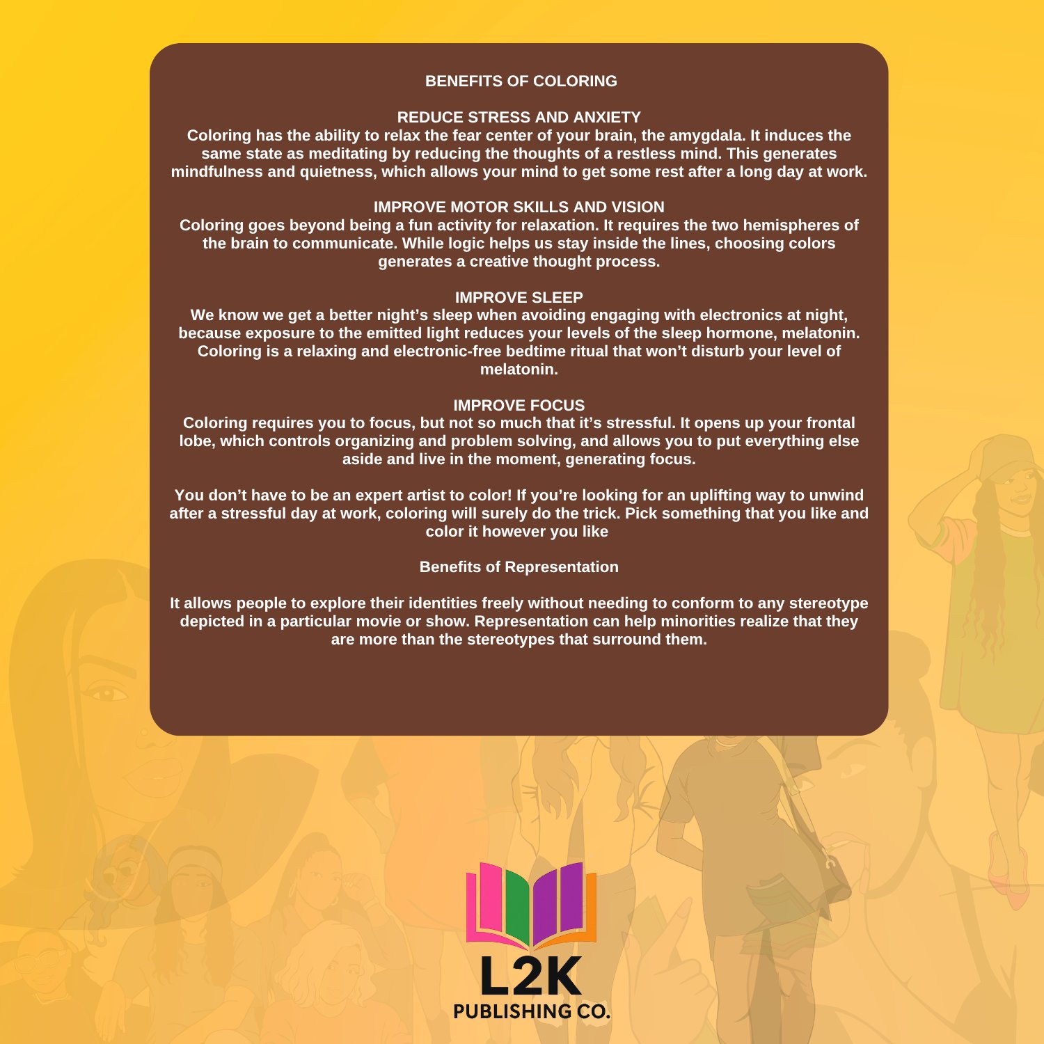 - A Celebration of Melanin — Honor the elegance, confidence, and resilience of Black women on every page.